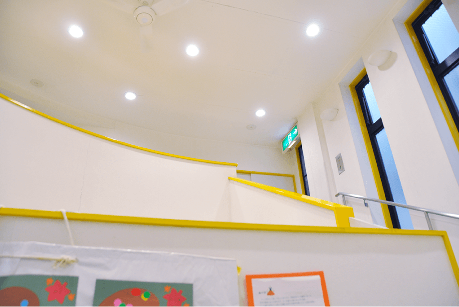 3歳〜5歳児が通う園舎と、乳幼児クラスの園舎をつなぐ渡り廊下です。ハグミー・ナーサリーならではの渡り廊下で、子どもたちのお気に入りスポットになっています。
